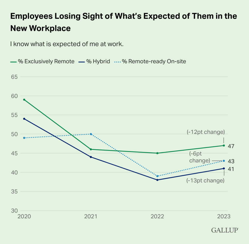 - The lower-level folks (Gen Z) who are either overwhelmed or not busy enough with meaningful work while simultaneously disempowered with lack of the learning and engagement opportunities available to older generations (via in-office socialization and travel opportunities).